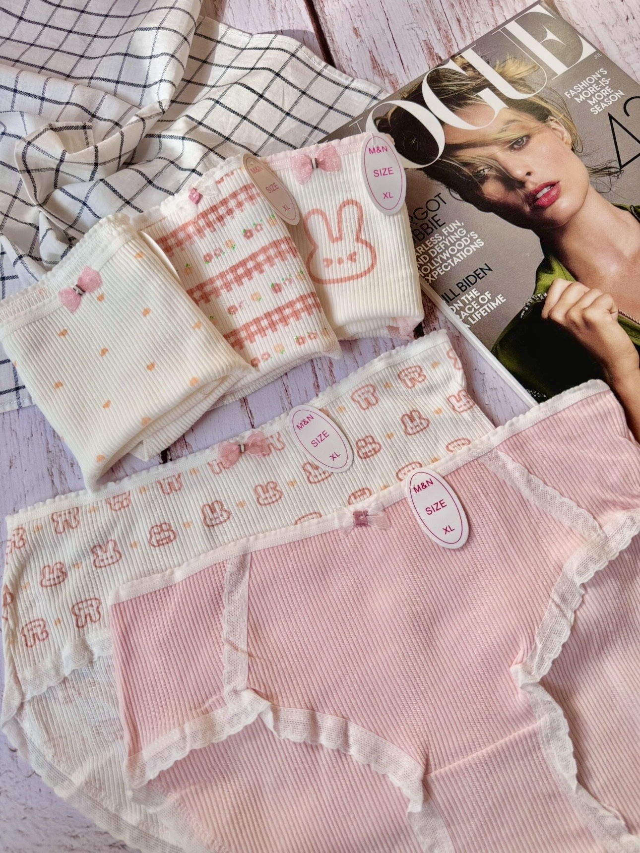 ناموجودشورت نخی عروسکی سایز xl طرح خرگوش صورتی 🐰