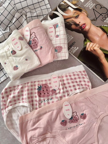 شورت نخ پنبه فانتزی سایز xl طرح توت فرنگی صورتی🍓