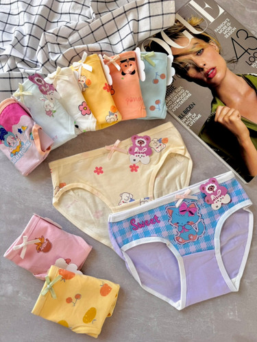 شورت اسلیپ نخ پنبه دخترانه استیکردار 10_۱۲ سال