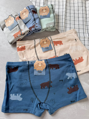 شورت پادار نخ پنبه پسرانه استیکردار طرح خرسی 🐻❄️🐻