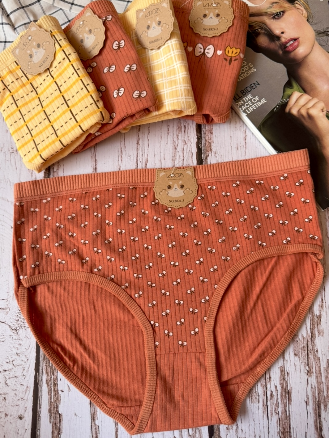 شورت نخی عروسکی سایز Xl طرح گل و پروانه آجری 🧡