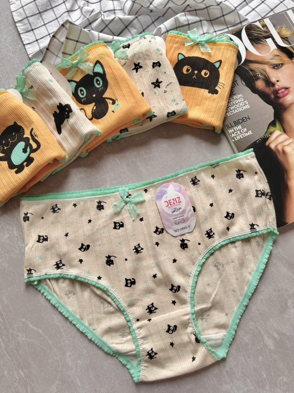 شورت نخی عروسکی سایز 2xl طرح cat 🐈⬛🩵